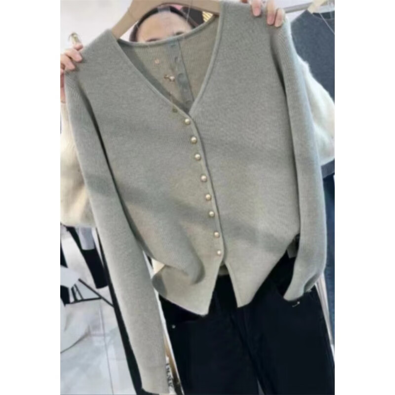 小香风针织衫女2024秋冬新款内搭上衣显瘦圆领单排扣针织开衫马甲 均码