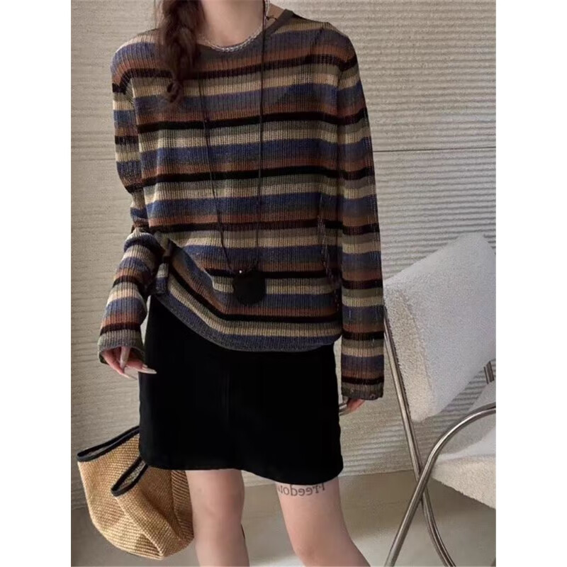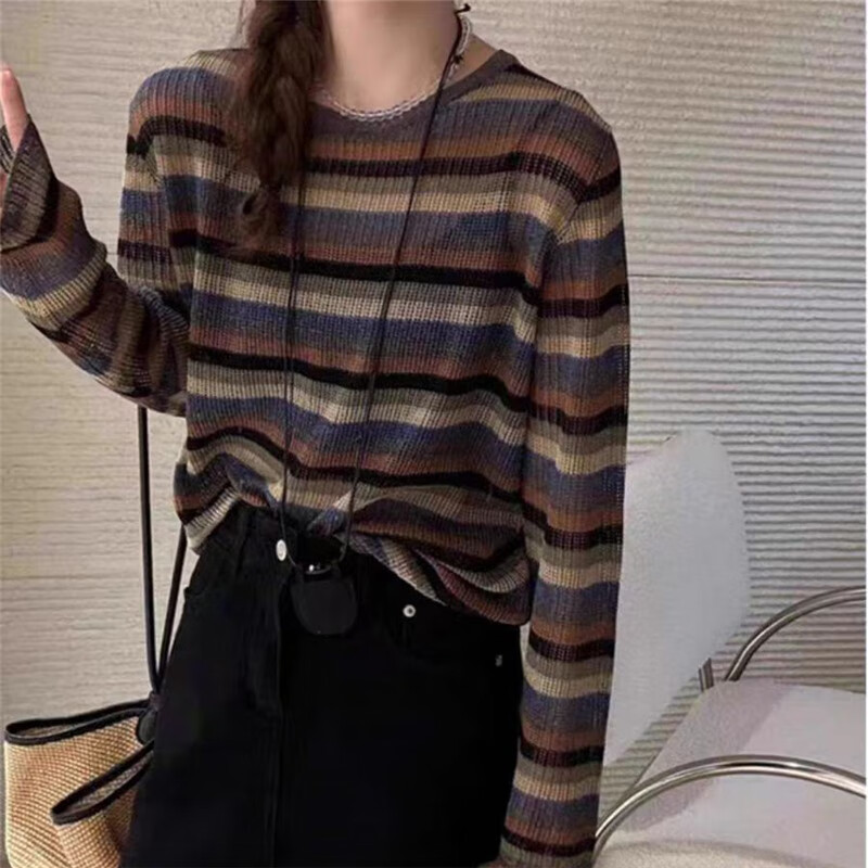 针织衫女2024秋冬新款别致温柔上衣内搭镂空长袖打底衫针织毛衣 均码